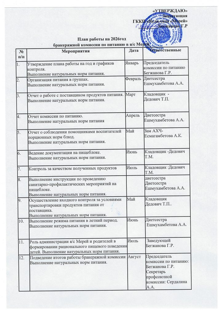 Бракераж комиссиясының 2026 жылға арналған жұмыс жоспары