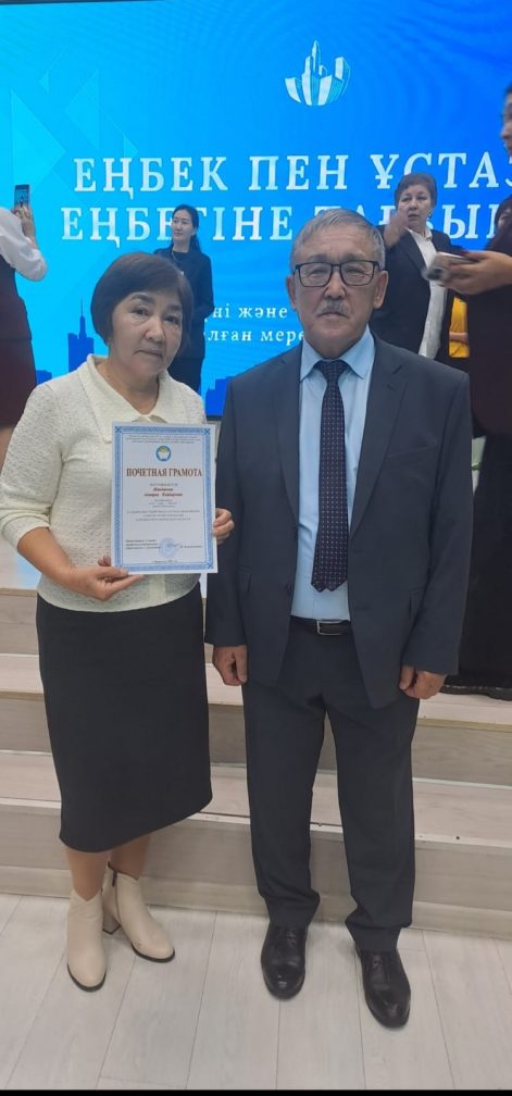 Ұстаздар күніне орай қалалық білім беру қызметкерлерінің кәсіподақ ұйымы білім беру жүйесіндегі адал жұмыс атқарғаны және кәсіби қызметте қол жеткізген нәтижелері үшін тәрбиеші Жандинова Акмарал Кайдаровна Құрмет грамотасымен марапатталды